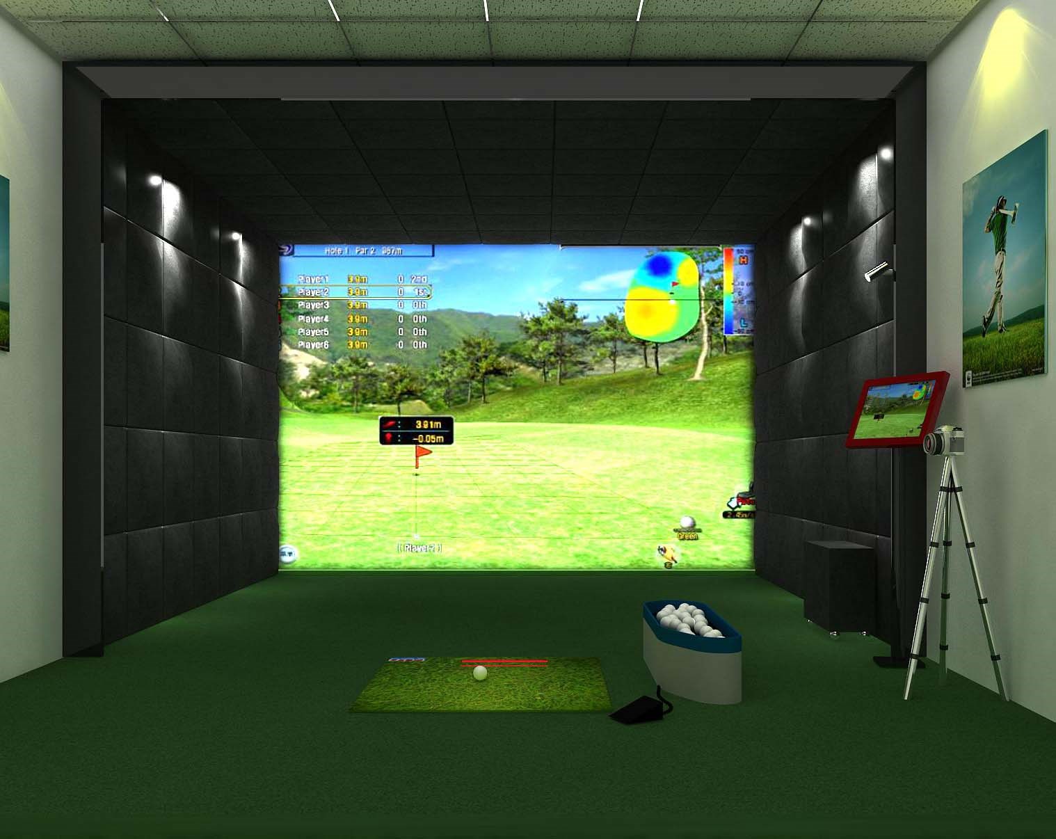 一、室内模拟高尔夫相对于室外球场,屏幕高尔夫不受气候,季节的影响,可全天候,常年打。二、室内模拟高尔夫占地面积小,房间标准为4米宽7米长3米高。 如场地可较大,可增设绿化摆放区,休息区及吧台等设备。三、使用方便,睡前,饭后,工作时,可随时摆动。 这是对客户和合作…